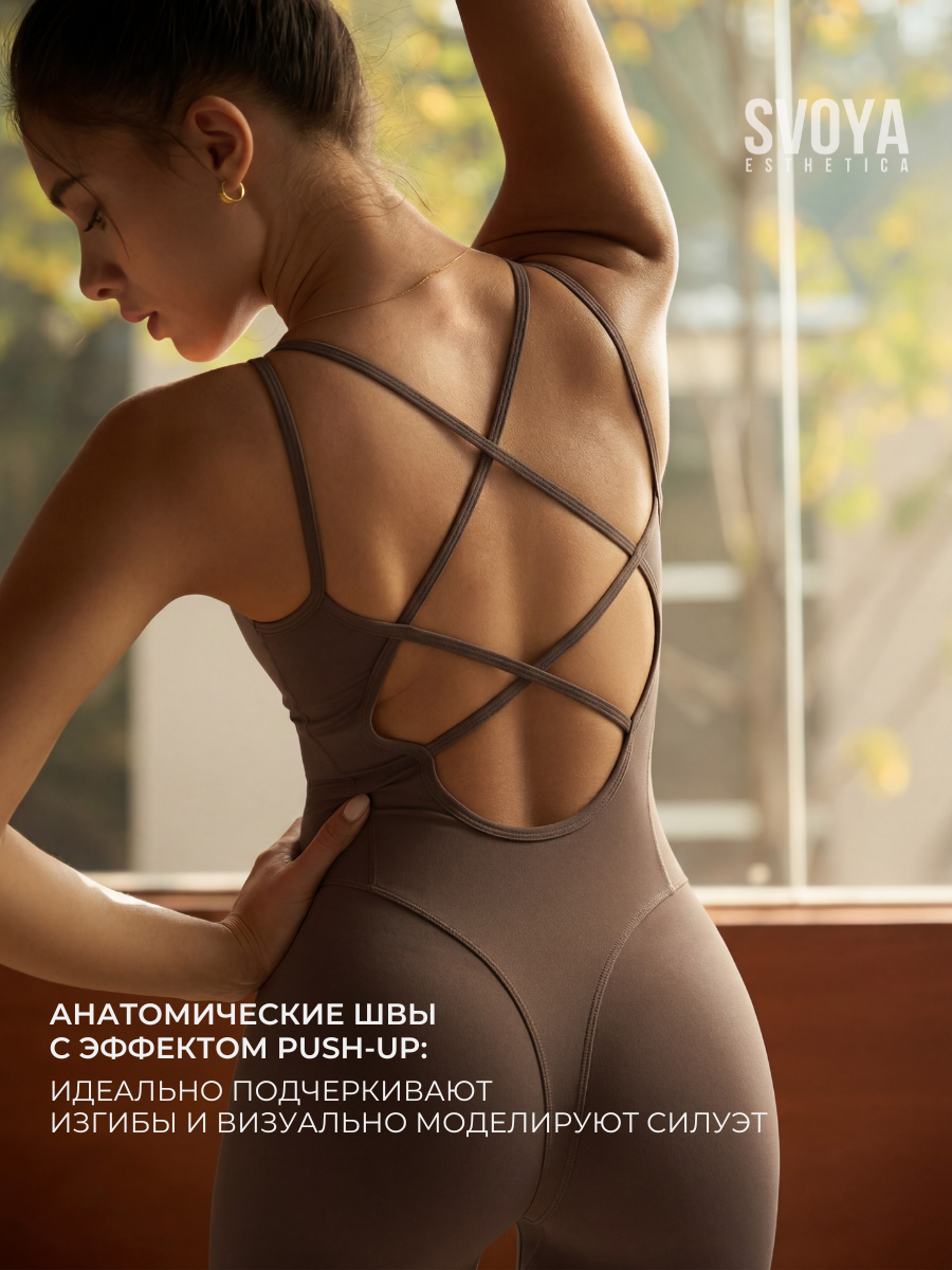 Комбинезон можно носить в спортзале, на йоге, пилатесе, растяжке или во время прогулок. Лаконичный дизайн делает модель универсальной — она легко вписывается в повседневные образы с худи, рубашками и спортивными куртками.