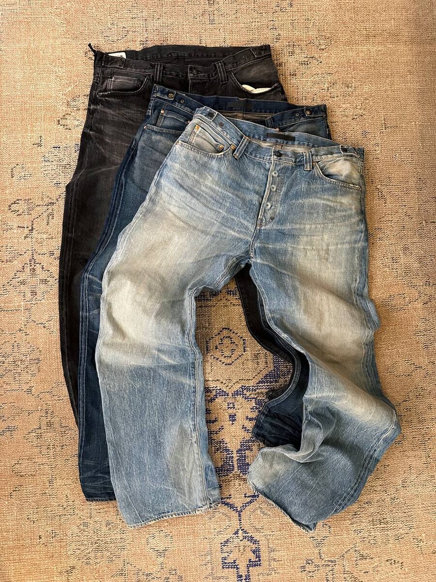Бренд использует селведж деним, который ткут на винтажных узких челночных станках, что дает уникальную текстуру и более ровное плетение. Такие джинсы дольше носятся и красиво стареют, со временем появляются индивидуальные потертости. Производство бренда находится в японском городе Okayama — известным своим производством высококачественного денима. Этот регион считается родиной японского джинсового производства и мировым центром ручного окрашивания индиго. Уже в SV на Тверском бульваре