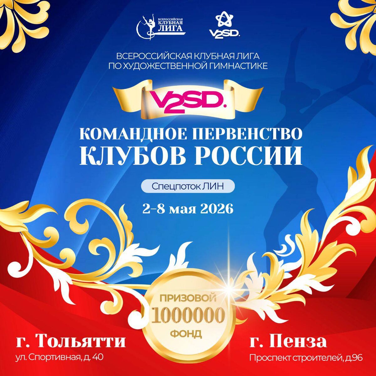 🏆 Главный командный старт сезона уже близко! Сильнейшие клубы страны встретятся вновь в борьбе за лидерство, рейтинг и главный приз на втором этапе ВКЛ 💵ПРИЗОВОЙ ФОНД — 1 000 000 РУБЛЕЙ‼️💥❤️ 🗓2–6 мая 2026 — Пенза 📍ДС «Буртасы», проспект Строителей, 96 🗓4–8 мая 2026 — Тольятти 📍ул. Спортивная, 40 — — — — — — — — — — — 🔥V2SD Командное первенство клубов России — это: ✅сильнейшие гимнастки клубной системы ✅официальные рейтинговые очки Всероссийской Клубной Лиги ✅присвоение спортивных уровней Международной Клубной Лиги ✅масштабная командная борьба 🥇🥈🥉Лучшие ФСО- партнеры клубной лиги и лучшие субъекты клубной лиги будут награждены 28 мая в Общественной палате Российской Федерации🎗 — — — — — — — — — — — ⚡Это не просто соревнования — это главная командная проверка сезона, где решается, кто станет сильнейший ФСО и субъектом в России. 📢Подробности и положение — на сайте: https://rgclubsleague.com/schedule/vkl-pervenstvo-clubs/?clear_cache=Y 🔥Включается вся страна. Команды
