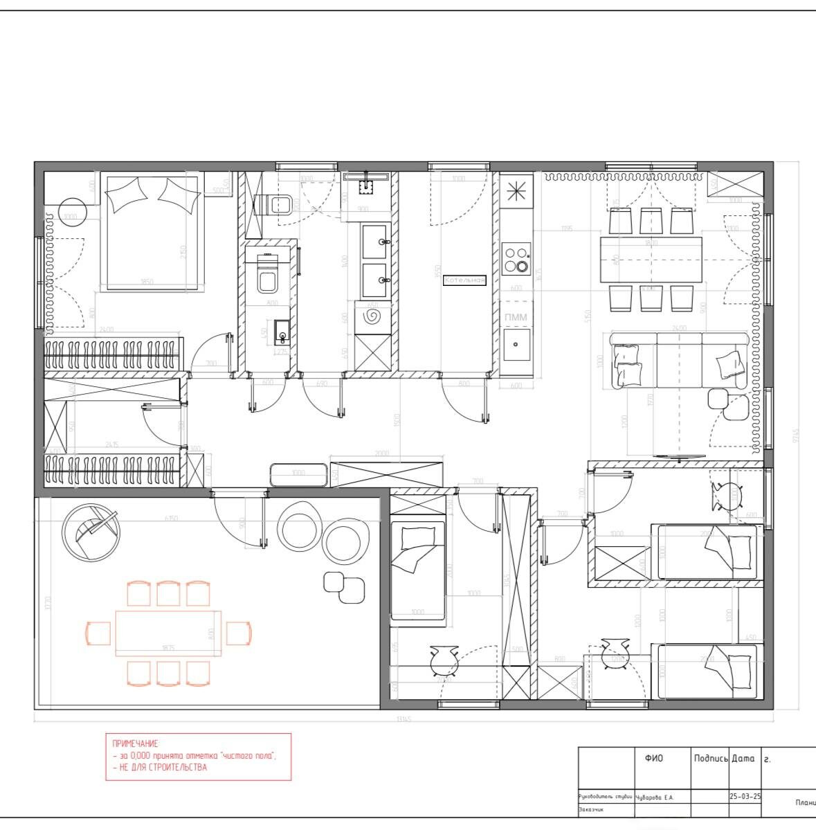 Ко мне не первый раз обращаются ещё до того, как залит фундамент. И это самый правильный подход. Почему это правильно❓ Потому что сначала мы расставляем мебель, продумываем зоны, а потом фиксируем, где должны быть окна, двери и несущие стены. 📍 Окна — если они не там, где нужно, вы теряете полезную площадь. 📍 Двери — от их расположения зависит, встанет ли ваш любимый диван или вместительная система хранения. Как это было в одном из проектов: Клиентка пришла ко мне до этапа архитектурного проектирования. Мы спланировали пространство, расставили всю необходимую семье мебель, а затем нарисовали стены, окна и дверные проёмы так, чтобы каждый сантиметр работал на комфорт. С этим планировочным решением она отправилась к архитектору — он спроектирует дом с учётом уже верных осей и проёмов. Когда стены будут возведены, мы сделаем контрольные обмеры. Если в процессе стройки что-то незначительно сместилось — скорректируем планировку. И только после этого создадим полный дизайн-проект дома