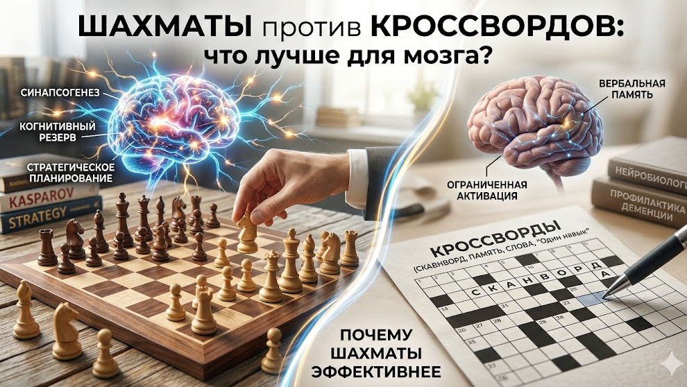 Шахматы против кроссвордов: какой тренажер действительно спасает мозг от старения?
