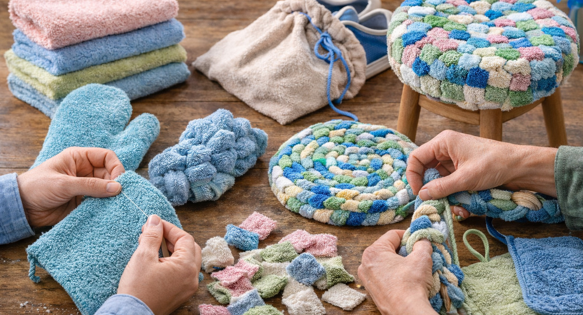 Шкаф ломится. Махровые квадраты и прямоугольники копят пыль на верхних полках. Гостевые комплекты так и не дождались гостей. Выкинуть жалко, хранить — бессмысленно. Ненужные полотенца превращаю в мочалки и коврики. Без швейной машинки. Без вязального крючка. Без специальных навыков. Семь простых способов — каждый займет не больше десяти минут. Старые махровые полотенца — идеальный материал. Они мягкие, впитывающие, прочные. Им не место на свалке. Им место в ванной, на кухне и в прихожей. Нужны три-четыре одинаковых полотенца. Можно разных цветов — получится весело. Каждое нарезаете на полосы шириной 5-7 см. Полосы сшиваете или связываете в одну длинную веревку. Теперь косичку. Заплетаете как обычную косу из трех прядей. Готовую косу сворачиваете по спирали. Скрепляете витки — нитками, клеем для ткани или просто сшиваете в нескольких местах. Коврик мягкий, впитывающий, не скользит. В стиральной машине не боится отжима. Круглое полотенце (или квадратное, обрезанное по кругу) — основа. На