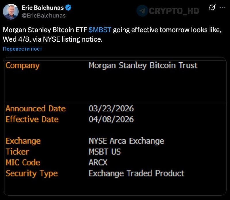 🇺🇸 Завтра состоится листинг Bitcoin ETF от Morgan Stanley – Eric Balchunas