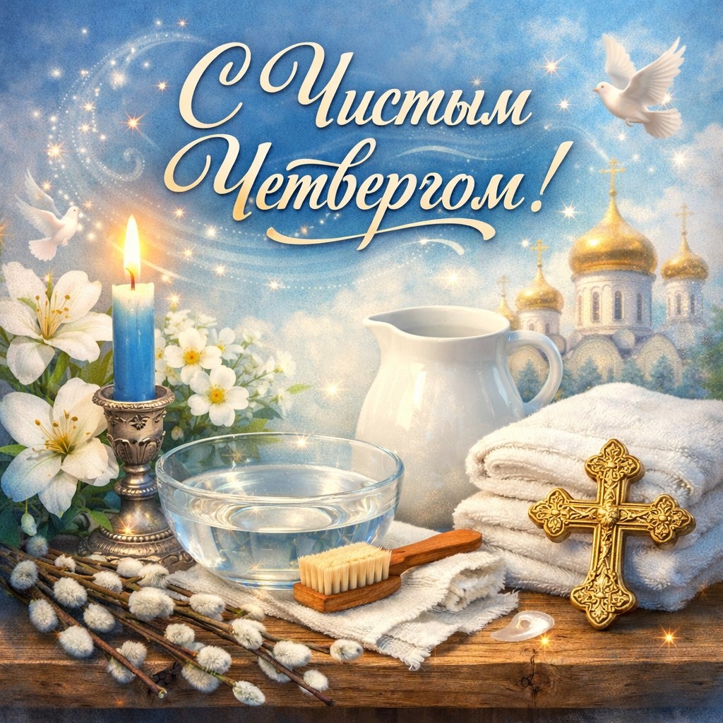 С Чистым четвергом! Пусть сегодня смоется всё, что тянуло тебя ко дну — обиды, усталость и тревоги. Обновись душой и телом.