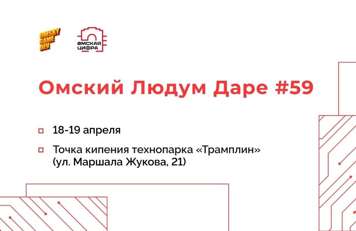 Творческое соревнование для программистов, художников, музыкантов и сценаристов по созданию игр. Участники делятся навыками, идеями и получают обратную связь в конструктивной среде. Начало: 19 апреля 2026 18:00 Стоимость: Бесплатно Адрес: г Омск, ул Маршала Жукова, д 21 Организатор: https://vk.com/public221003790 ⚡️18-19 апреля в Точке кипения технопарка [https://vk.com/tramplintech?from=groups|«Трамплин»], участника Омской Цифры, состоится хакатон по разработке игр — Омский Людум Даре. 👤Мероприятие проводит Omsky Gamedev (https://t.me/omsky_gamedev). 📲На хакатоне собираются творческие люди — программисты, художники, музыканты, сценаристы — и самовыражаются через создание игр. На соревнование можно прийти одному или с командой. ✅Особенность мероприятия —... #интеллектуальное_развитие_it Узнать подробности, адрес или записаться на событие.