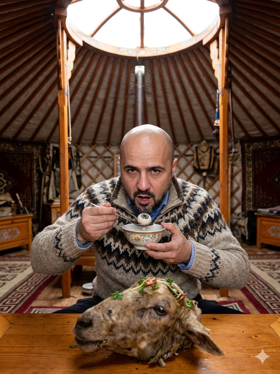 Глаз барана в монгольской традиции — это честь. Его отдают самому уважаемому гостю за столом. Не самому старшему, не самому богатому — тому кого хотят отметить. Тому кому говорят: ты здесь не чужой.