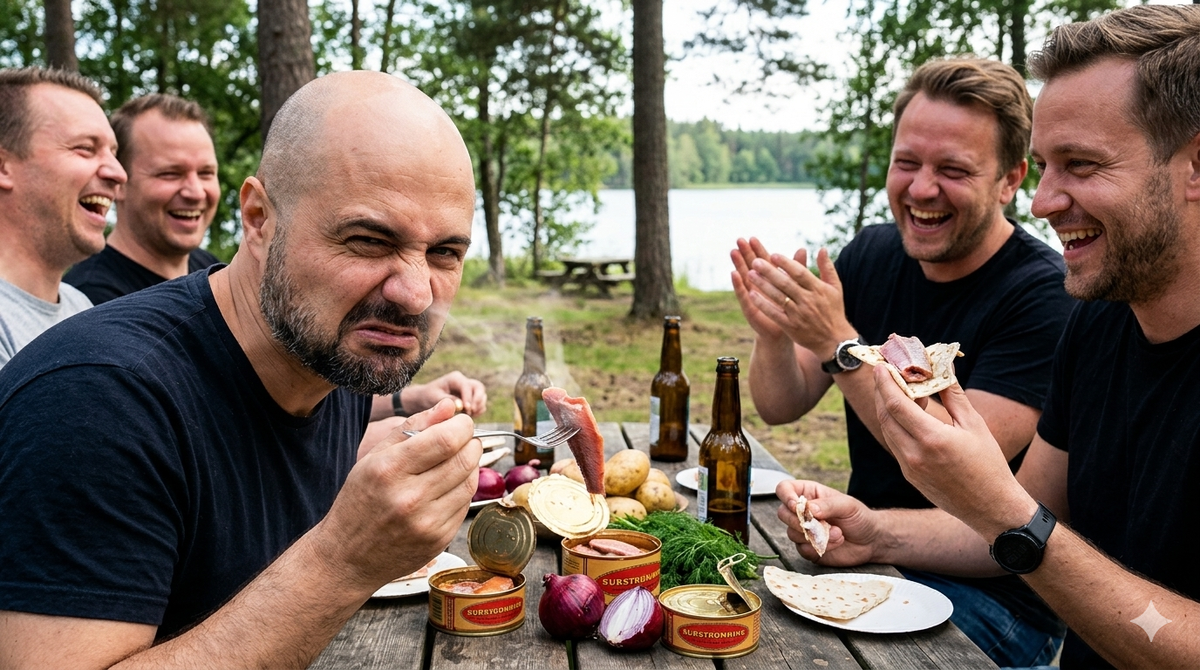Не потому что вкуснее или опаснее. А потому что его запах — единственный из трёх который я не могу воспроизвести в памяти без физической реакции. Хаукарль я уже почти забыл. Хонгео помню как испытание. Сюрстрёмминг — помню как травму.