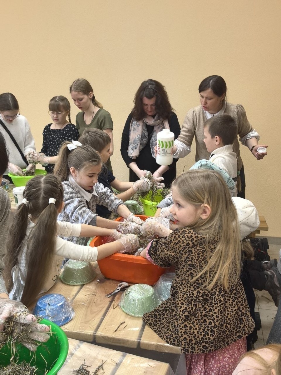 особенная, по-домашнему уютная атмосфера. За несколько дней до праздника за совместным трудом собрались воспитанники, их родители и педагоги, чтобы своими руками создать один из символов зарождающейся жизни — пасхальную композицию «Гнездышко». Идея объединить в одном мастер-классе сразу несколько народных и христианских традиций пришлась по душе и малышам, и взрослым. Основой для творчества стали небольшие гнездышки из ароматного лугового сена. Но самым интересным и вдохновляющим этапом стала высадка семян пшеницы. «Мы хотели, чтобы дети наглядно увидели само чудо Воскресения, — поделилась матушка Анастасия. — Ведь сухое зерно, упав в землю, “умирает”, чтобы дать жизнь новому колосу. Так же и душа человека, очищенная постом и молитвой, стремится обновиться в пасхальную ночь. А еще это напоминание о том, что Христос есть истинная жизнь и свет для мира».