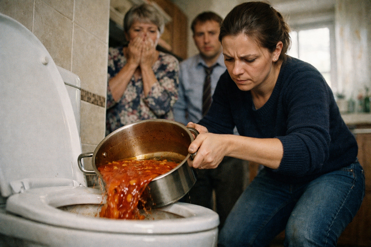 Я не ответила. Я прошла в туалет, ногой откинула крышку унитаза и одним резким движением вывернула туда всё содержимое кастрюли. Плеск был оглушительным. Густой бульон, нежное мясо, те самые огурчики — всё исчезло в канализации.