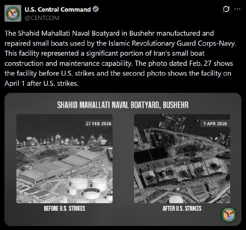 CENTCOM shows IRGC boatyard before & after REDUCED TO RUINS