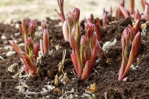 - Ростки только показались, высотой 2–4 см. Вы видите, где находятся почки возобновления, но они ещё не вытянулись.
