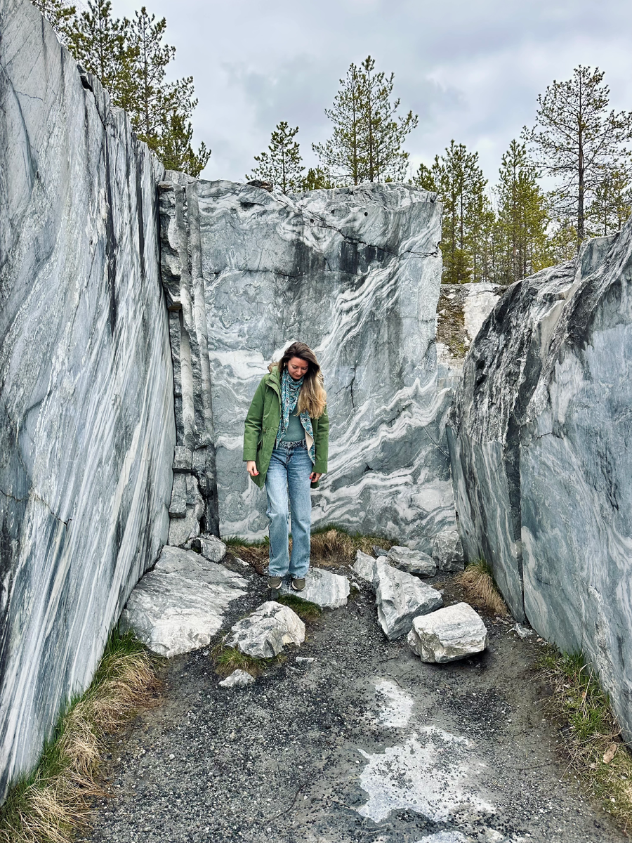 или день 5 в Карелии В тот день мы решили никуда не торопиться и рассчитывали посетить только один объект, но вышло чуть больше 🙃 После сытного завтрака в «нашем зоопарке» поехали в Рускеалу. Этот парк - жемчужина Карелии, поэтому это одно из самых людных и дорогих мест💶 Ехать сюда ОДНОЗНАЧНО по возможности, кончено, нужно в будний день. И отводить на это место очень много времени. Можно заплатить просто за вход в парк, навернуть огромный круг от карьера до озера и, опять же, по возможности, подслушать чужую экскурсию😁 А можно ☝🏼прогуляться самостоятельно до самых дальних уголков парка, куда не водят экскурсии, собрать все крошечные знаковые фигурки местных хранителей и спуститься к перрону, на который, гудя на всю Рускеалу, подъезжает ретропоезд, который я ну никак не смогла вписать в наш тур, но как-нибудь это сделаю ✌🏼потом пообедать (но не в местной бургерной, она очень на любителя), взять экскурсию по парку и узнать его непростую историю ✋🏼а потом взять еще одну экскурс