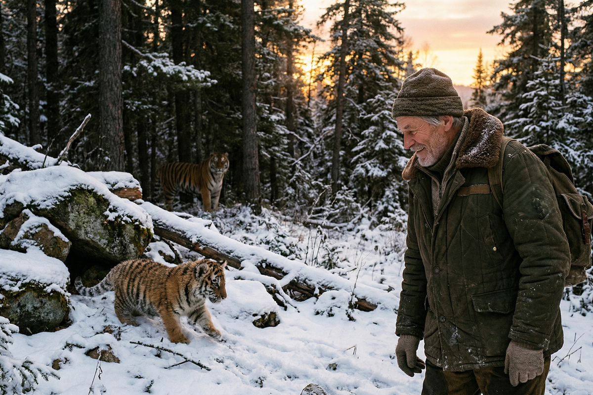 Трофим долго сидел на камнях, слушая тишину ущелья. Затем он протянул загрубевшие от работы руки к пушистому комочку. Тигренок вздрогнул, но не убежал. Он понюхал протянутые ладони, почувствовав знакомый запах, который всегда сопровождал его мать в последние месяцы, и доверчиво ткнулся теплым носом в ладонь старика.
