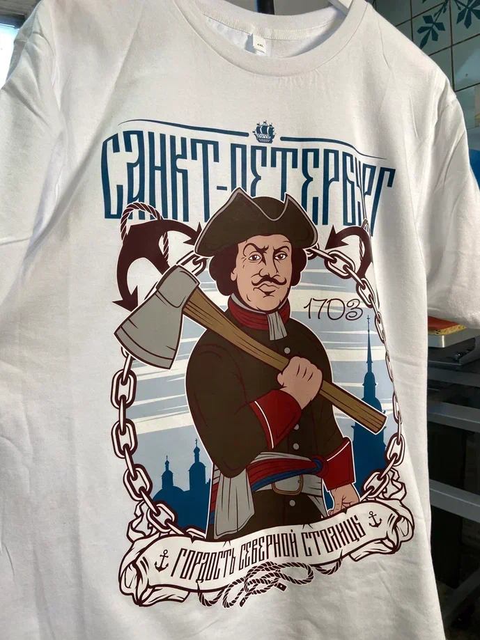 Желание сделать принт побольше понятное и знакомое. При этом «технически можно» и «красиво смотрится» - это две разные задачи. Давайте разберём по зонам, чтобы результат радовал. Грудь и спина: максимум 40×60 см, а комфортный размер для логотипа или фото - 25×35 см. Именно он выглядит аккуратно и притягивает взгляды. Карман или левая сторона груди: зона около 8×8 см. Сюда хорошо ложится небольшой логотип: лаконично и узнаваемо Рукав: до 10×10 см. Звучит скромно, а на деле смотрится очень выигрышно: небольшой логотип или надпись добавляют деталь, которую замечаешь при ближайшем рассмотрении Простой ориентир: принт занимает треть видимой зоны. Представьте футболку мысленно разделённой на три части по высоте. Принт, который занимает одну из них, смотрится как осознанный акцент и притягивает взгляд. Это правило работает для логотипов, фото и надписей. Исключение, когда весь принт и есть замысел: паттерн, арт, полноформатная иллюстрация. Тогда правила другие, и мы обсудим их отдельно Есть