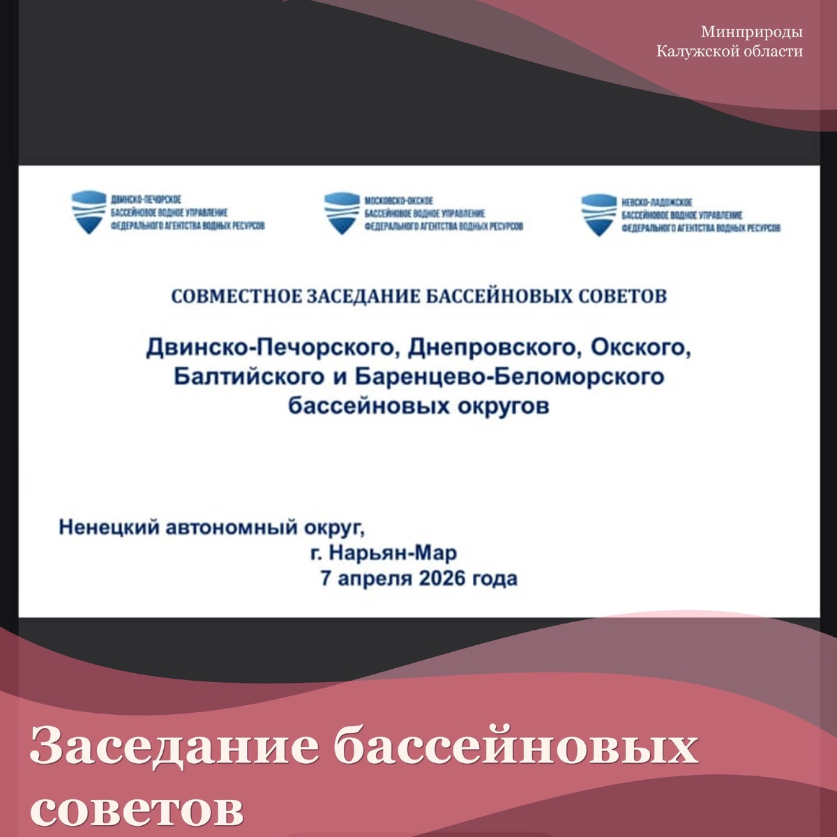 Нарьян-Мар состоялось, ставшее уже традиционным, совместное заседание бассейновых советов Двинско-Печерского, Днепровского, Окского, Балтийского и Баренцево-Беломорского бассейновых округов. От министерства в заседании в режиме ВКС приняли участие министр Жипа Владимир и его заместители - Артамонова Наталья и Федулова Галина. На заседании обсуждались вопросы планирования и реализации мероприятий уполномоченных органов исполнительной власти субъектов РФ в рамках переданных полномочий в области водных отношений, в том числе в рамках федерального проекта «Вода России» национального проекта «Экологическое благополучие», предотвращения негативного воздействия вод, прохождения половодья в 2026 году в зонах деятельности бассейновых округов, использования и охраны водных ресурсов. Наш канал в МАХ: https://clck.ru/3QfGS6