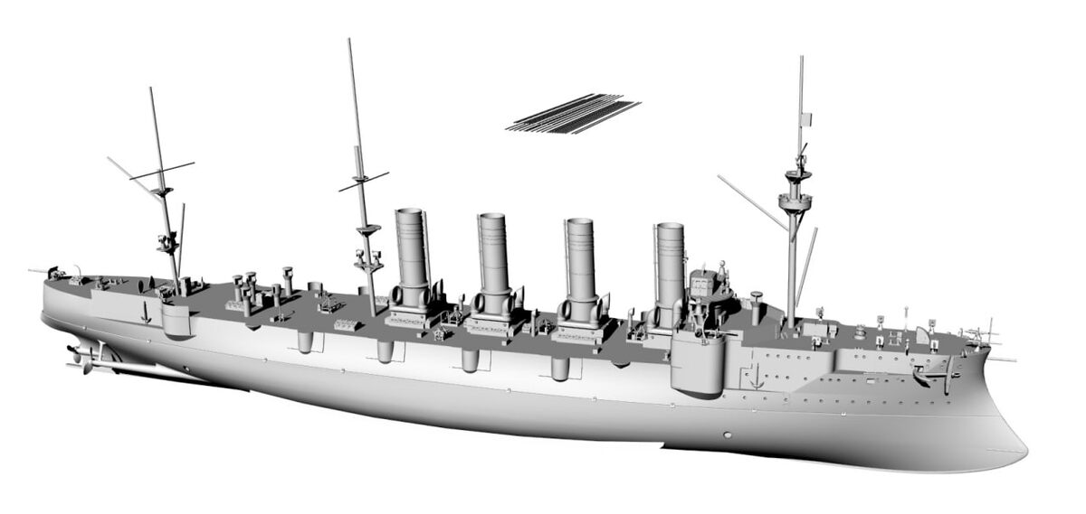 : По Громобою статус. Пока не могу себя заставить взяться за фальшборт, а изза этого стоят многие вещи по корпусу (рукава и пр.) и не расставляется артиллерия. Соберусь с духом сделаю . С России удалось частично умыкнуть якоря, мачты и дефлекторы. Все остальное или переделка или с нуля. В общем пока как-то там. Работа не стоит , трехмерку насыщаю деталями. Из интересностей: 1. форма ящиков у помещений под трубами интересная (высмотрел лишь по фото). На картинке все есть слова думаю лишние. 2. крылья мостика - то фонари , то пулеметы. Дам и то и другое на на момент боя были фонари. 3. "Ребра" на трубах . На чертеже РГА , модели из Белоруссии и фото после РЯВ - 2 нижние плоски под наклоном, на фото после боя - параллельны. Сделал как на бой.