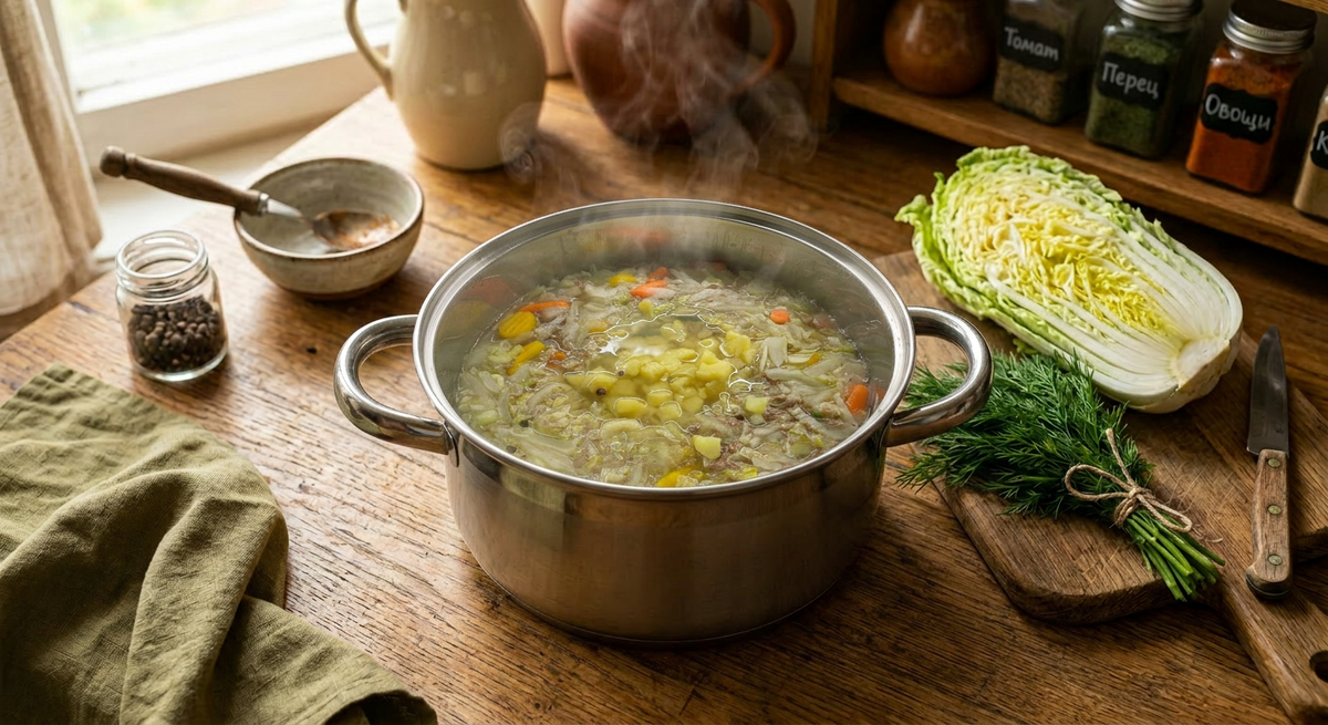 Знаете, я никогда не любила пекинскую капусту. В магазине она манит — такая красивая, хрустящая. А дома нарежешь в салат — и понимаешь, что жуешь какой-то силос. Объем в тарелке есть, а радости никакой. Долгое время я пыталась её полюбить: заворачивала в голубцы, строгала к ужину, а потом с чистой совестью выбрасывала завявшие остатки. Пока однажды мне не пришло в голову сварить из неё суп. Оказалось, эта «салатная трава» просто создана для горячего бульона! И самое главное — с ней получаются шикарные, богатые овощные щи буквально за 20 минут. Раньше я по старой привычке варила супы огромными пятилитровыми бадьями. А потом поняла: зачем? Нас с мужем двое, есть одно и то же три дня подряд скучно. Теперь я варю в маленькой кастрюльке ровно на два раза. Это освобождает кучу времени, а в холодильнике ничего не киснет. 🛒 Что понадобится (на кастрюлю 2 литра): Показываю свой любимый способ утилизировать остатки овощей и ту самую пекинку. Секрет здесь — в правильной очередности! У меня ост