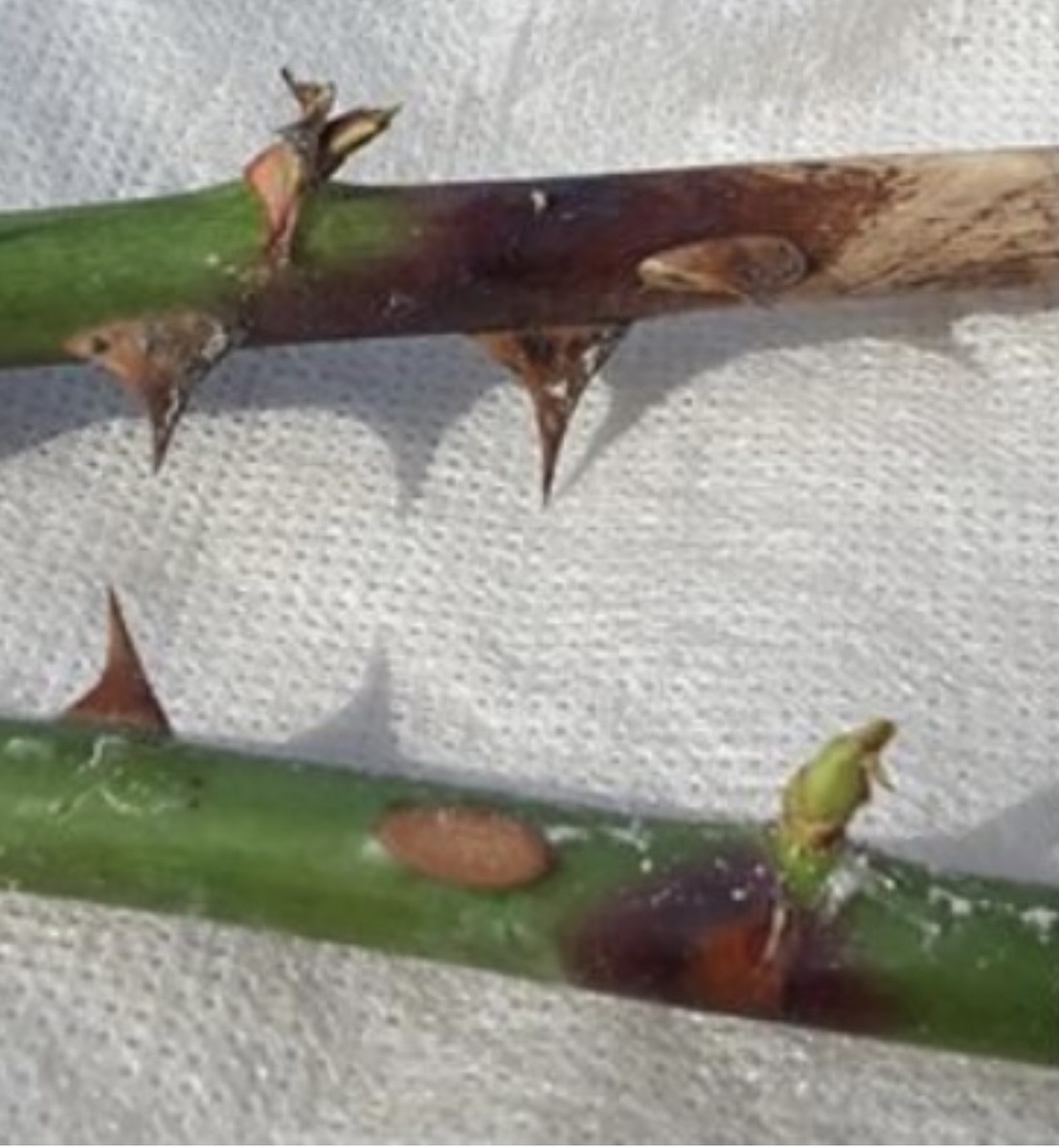 Название не соответствует действительности. Совсем не ожог. И причина не в инфекции. Это серьезное грибковое заболевание, которое часто называют рак стеблей. Именно его боятся розоводы больше всего.