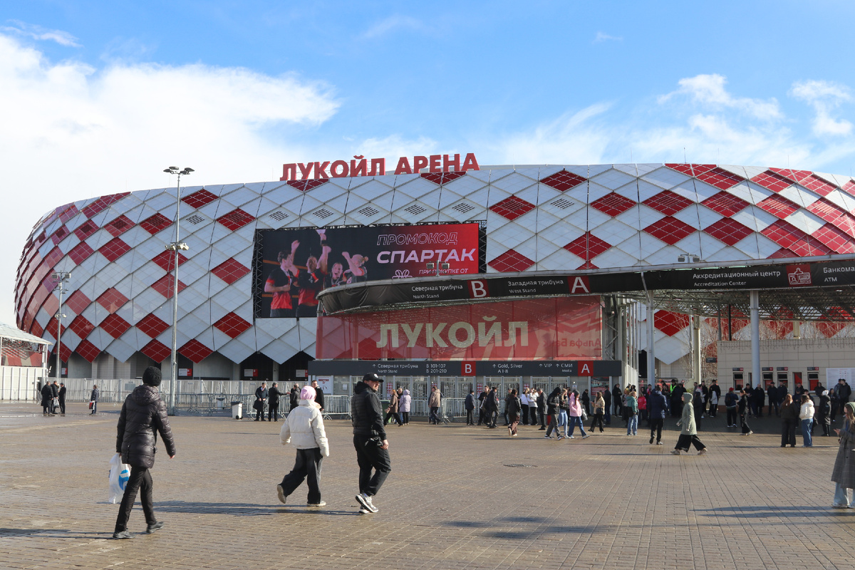 В воскресенье, 5 апреля 2026 года, после финала Кубка Московского спорта по фигурному катанию "Битва школ" на "Навка Арене" я отправилась на фестиваль болельщиков, развернувшийся перед футбольным матчем у станции метро «Спартак» на территории «Арена Лукойл». В дни, когда на стадионе нет матчей, проводятся экскурсии по стадиону. Расписание можно посмотреть на сайте с афиши. У входа на стадион установлена 25-метровая скульптура древнеримского гладиатора. Для гостей было организовано множество развлечений: от настольного футбола и аэрофутбола до других активностей. Особенно запомнилась возможность взять автограф и сфотографироваться с шеф-поваром Ильёй Захаровым, а также с легендарными футболистами: Романом Павлюченко («Спартак») и Дмитрием Сенниковым («Локомотив»). Кульминацией дня в 16:00 стала гастробитва! Роман Павлюченко и Дмитрий Сенников готовили блюда в стиле «Октоберфеста» под руководством шеф-повара Ильи Захарова. Зрители смогли не только понаблюдать за процессом, но и попробо