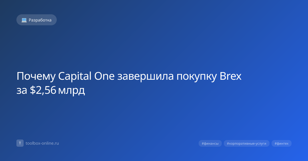 Capital One завершила покупку Brex за $2,56 млрд, чтобы укрепить свои позиции в сфере бизнес‑кредитования и предложить клиентам более гибкие финансовые инструменты. Сделка официально закрылась 15 марта 2026 года, а её стоимость в рублях составляет около 230,4 млрд ₽ по курсу 90 ₽/$. Это позволяет компании ускорить развитие облачных решений для корпоративных клиентов. Capital One приобрела Brex, чтобы быстро выйти на рынок финтех-решений для стартапов и средних предприятий. Основная цель – объединить технологическую экспертизу Brex с широкой клиентской базой Capital One. Интеграция даёт клиентам доступ к единой платформе, где можно управлять расходами, получать аналитические отчёты и автоматизировать выплаты. Это уменьшает время обработки транзакций на 30 %. После объединения появятся гибкие кредитные линии, которые можно масштабировать в зависимости от оборота компании. Новые функции будут доступны уже в Q3 2026. Сумма $2,56 млрд при курсе 90 ₽/$ переводится в 230,4 млрд ₽, из которых
