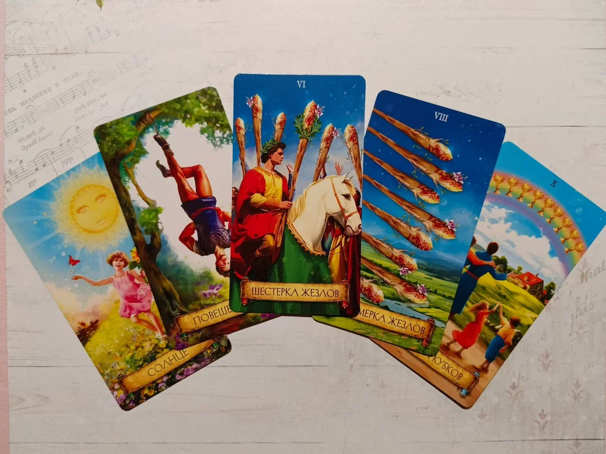 Вы — солнце, которое светит само по себе (Солнце). Вы замерли, чтобы увидеть правду (Повешенный). Вы уже победили свой страх одиночества (6 жезлов). Перемены уже летят к вам со скоростью стрелы (8 жезлов). И всё это приведёт вас к дому, радуге и полной чаше (10 кубков).