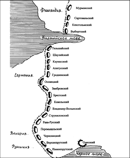 Начальник генштаба РККА издал 14 апреля 1941 года директиву о срочном приведении в боеготовность всех долговременных огневых сооружений, укрепленных районов с установкой в них оружия полевых войск при отсутствии табельного. История с укрепрайонами - одна из самых загадочных предвоенных историй, связанных с обороной страны, и сыгравшей роковую роль после нападения Германии на СССР. В течение 1938 года были реконструированы все имевшиеся на западной границе 13 укрепрайонов, составлявшие их гарнизоны насчитывали 25 пулеметных батальонов (18 тысяч человек). В конце 1938 и в начале 1939 года были построены еще 8 укрепрайонов. Однако с переносом границы на Запад (в связи с присоединением Западной Украины и Белоруссии) было принято решение о возведении 20 укрепрайонов по новой границе. Старая же линия обороны - по личному распоряжению Сталина - была фактически уничтожена: все они были разоружены; вооружение, боеприпасы, приборы наблюдения, связи были сданы на склады. Некоторые сооружения были