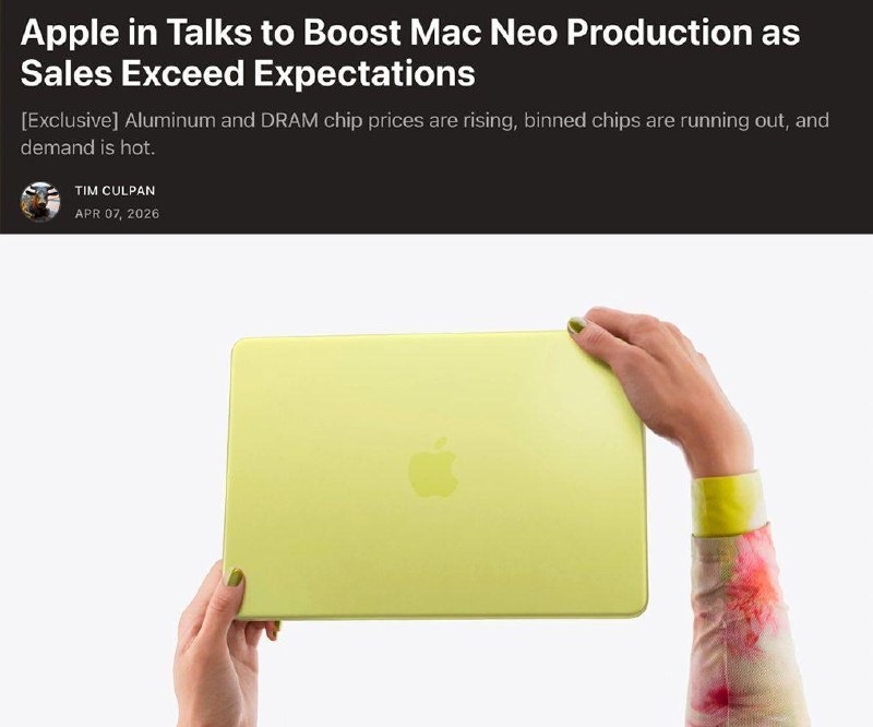 Apple готовит убийцу MacBook Neo аналог Neo, но с 12 ГБ ОЗУ, заявляют инсайдеры