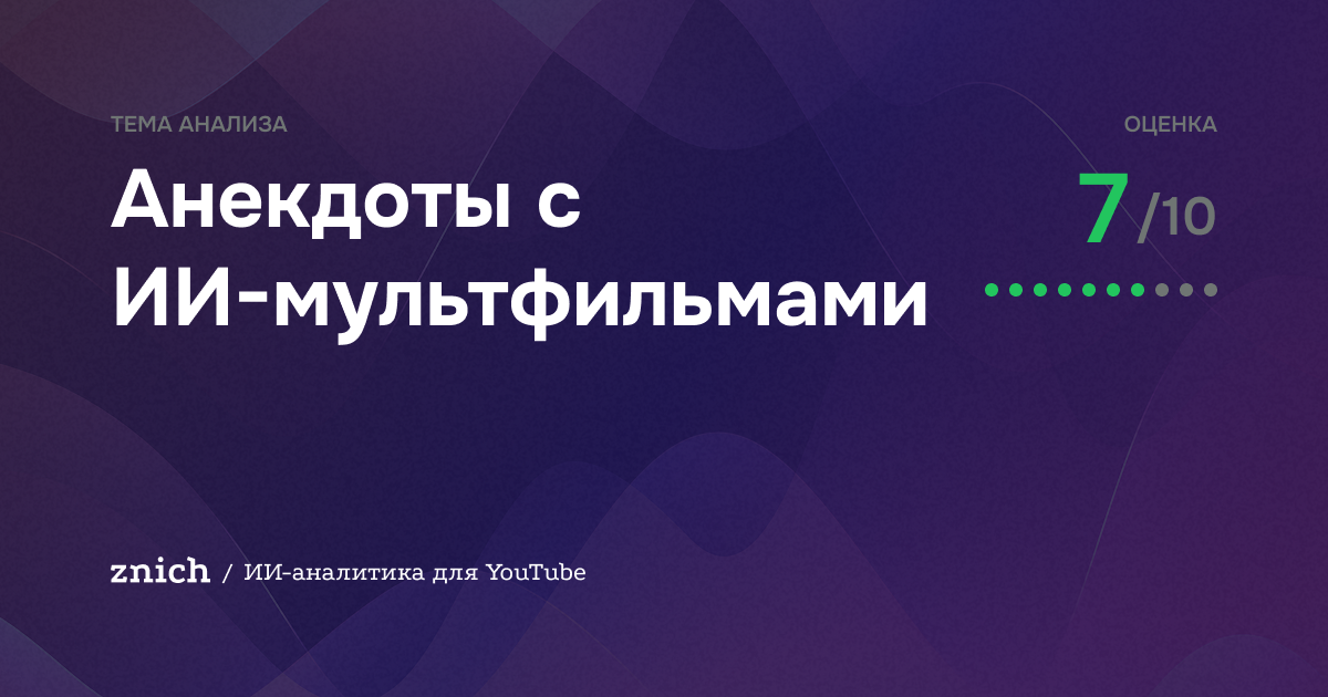 Начинающий автор видит каналы с 60 миллионами просмотров на старых анекдотах и думает: «У меня есть доступ к нейросетям, я просто нагенерирую картинок, озвучу шутку про тёщу и через месяц буду считать миллионы». Кажется, что это «золотая жила» с нулевым порогом входа: контента бесконечно много, а ИИ делает всю грязную работу за тебя. Я прогнал текущие показатели этой ниши через аналитику znich и сейчас объясню, почему за красивыми цифрами доходов скрывается жесткая игра на выживание. Рынок ИИ-анимации в юморе сейчас находится в фазе «агрессивного созревания». Мы видим гигантов вроде канала «Анекдоты» (285 000 подписчиков, 60,6 млн просмотров) и KolobokAnimation, которые уже зацементировали свои позиции. Деньги здесь есть, и они серьезные: топовые игроки зарабатывают от 124 000 ₽ до 7,5 млн ₽ в месяц. Важный нюанс — основной доход приносит не AdSense, а прямые интеграции букмекеров, игр и автотоваров, так как ядро аудитории — взрослые мужчины (30+). Это «платежеспособная курилка», где р