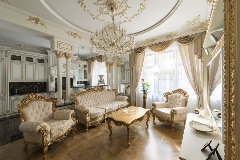 Классическая люстра — это доминанта. Она требует поддержки. Если у вас стоит ультрасовременный диван без ножек и стеклянный журнальный столик, а на полу бетон, хрусталь будет смотреться чужеродно.
