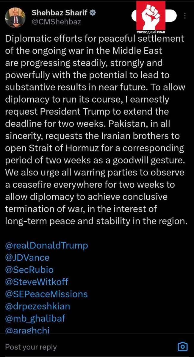 🇵🇰🇺🇸🇮🇷 Шариф попросил Трампа и Тегеран дать дипломатии еще 2 недели