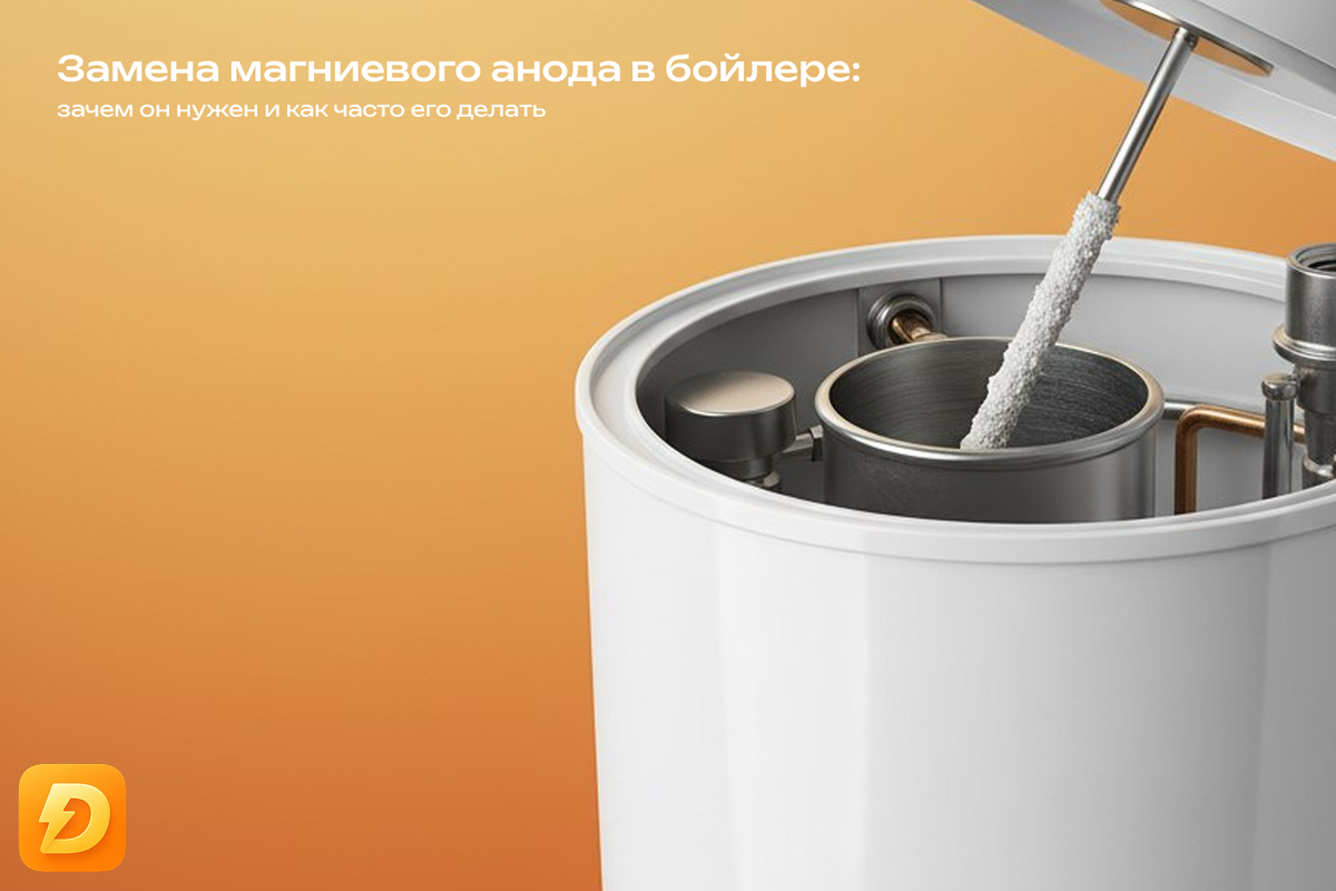 Бойлер служит верой и правдой долгие годы, но иногда техника начинает ржаветь или шуметь — виноват магниевый анод. Разберёмся, зачем он нужен, как понять, что его пора менять и какие шаги реально можно сделать самостоятельно, а когда лучше доверить работу специалисту. 1000 ₽ на первый заказ в Дели Дела — приятная скидка, если решите вызвать мастера вместо самостоятельного ремонта. Почему это происходит Магниевый анод — это небольшой, но крайне важный элемент бойлера. Его задача — защищать бак от коррозии. Без него металлический корпус быстро приходит в негодность, и ремонт становится дороже. Основные причины замены анода: 1. Естественный износ