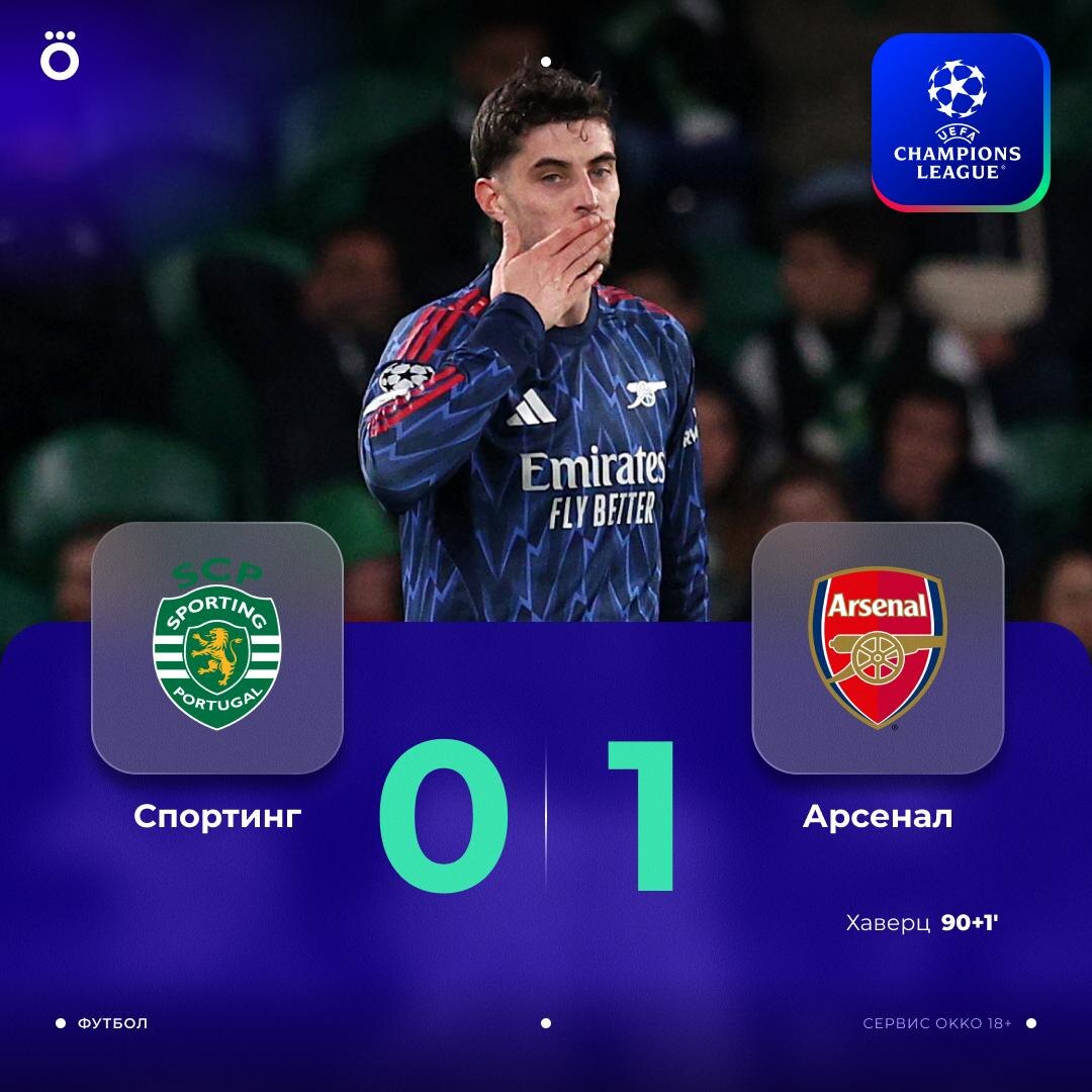 «Арсенал» забил только на 91-й минуте. Минимальная победа в Лиссабоне ⚽