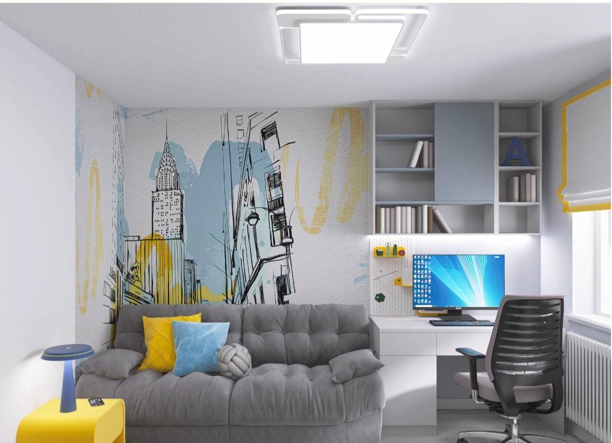 !🤩 Да, именно такую эмоцию у меня вызывают сейчас мысли о ремонте, потому что у нас завершен проект детской, а точнее подростковой комнаты для сына, с нее и начнем 🎉 Мы давно мечтали обновить комнату Арсения, но, все, что нравится в пинтерест - не факт, что подойдет, да и как можно разместить все, что нужно подростку на 10м2. А ему уже 14 и, конечно, детская уже должна быть совсем другой, должна учитывать интересы повзрослевшего молодого человека. Вобщем, чтобы избежать споров и всех мук выбора, мы впервые обратились за помощью к дизайнеру и результат превзошёл все ожидания: комната получилась не только красивой, но и каким то чудесным образом все, что хотел сын разместилось , даже турник , о котором он уже давно мечтает 😁 Мы поняли, что проект с дизайнером- это круто, удобно и невероятно интересно, от души благодарю и рекомендую всем нашу волшебницу Яну Рыжкину 👏👏 Интересный момент, что любимые цвета сына она смогла смиксовать в более светлых тонах, поэтому комната выглядит