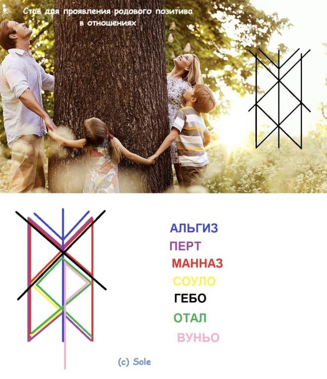 Став для проявления родового позитива в отношениях. Автор - Sole. 📌В составе: Альгиз — защита, помощь и поддержка свыше. Перт — Манназ — канал, связывающий с предками и Родом. Соуло — вытаскивает на свет скрытый позитив рода и запускает его в действие. Гебо — отвечает за отношения. Отал — символ семьи, дома, наследия. Вуньо — приносит счастье и радость. Оговор: Силой этих рун и с благословения Высших Сил все хорошие семейные сценарии и установки, что были в моем роду, проявляются в моей реальности самым лучшим образом и приводят к созданию крепкой и счастливой семьи. Ставится после чисток от родового негатива. Еще больше ставов и полезной информации👉 <<<МАГИЯ РУН>>>