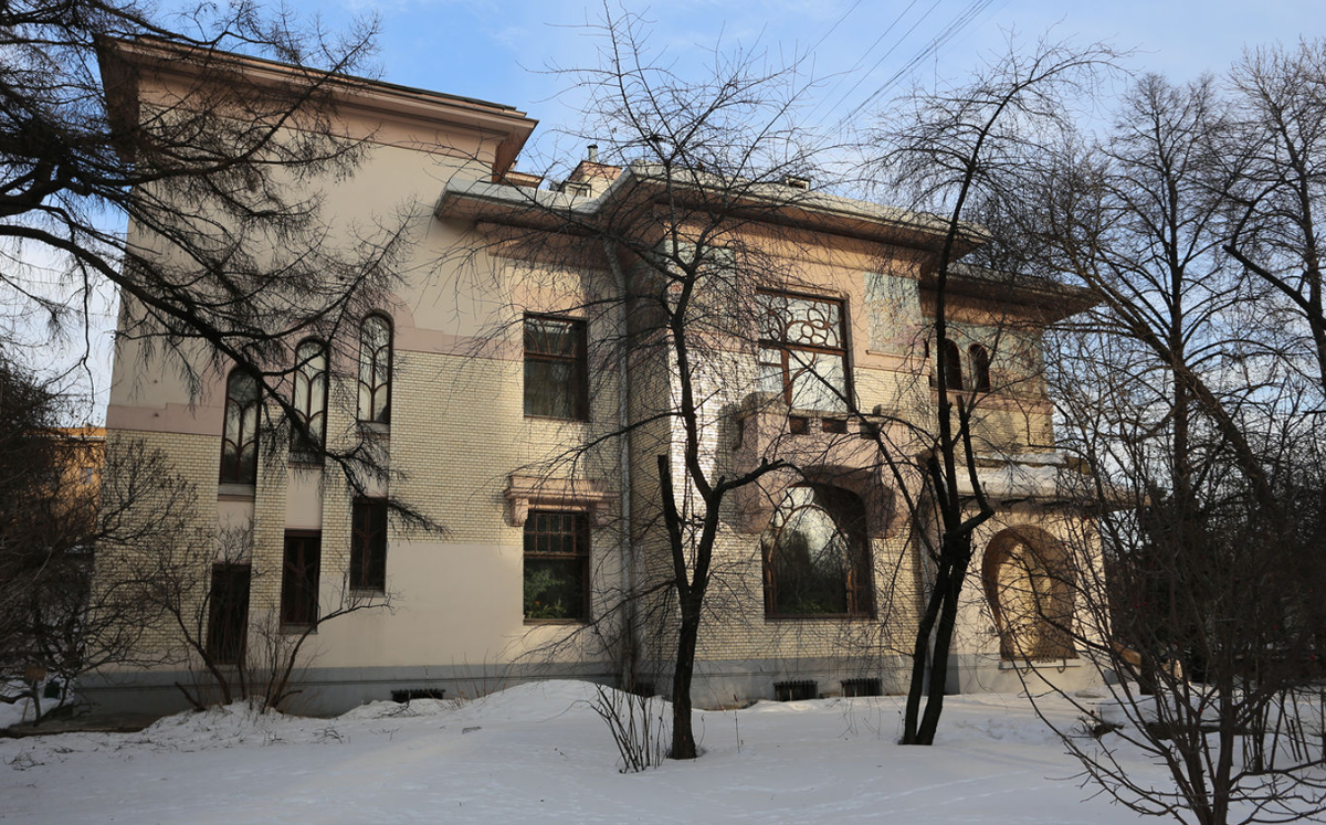 Проект 1899–1903 годов реализовывался в условиях тесного центрального участка и строгих градостроительных правил. Шехтель пошёл на хитрость: вывел на красную линию только парадное крыльцо, а основной объём отодвинул вглубь, окружив садом. Так возникло воздушное пространство, зрительно отдаляющее дом от суеты улицы. Этапы стройки включали не только возведение стен, но и создание реставрационной мастерской на третьем этаже — именно там Рябушинский восстанавливал иконы из своей коллекции, включая «Архангела Михаила» и «Одигитрию». Шехтель произведения этого периода отличаются вниманием к технологическим новшествам: система вентиляции, лифт для подачи блюд из кухни в столовую.