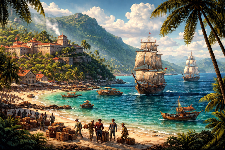 Карибы принято представлять как открытку: пальмы, лазурная вода и ленивое солнце. Но история Trinidad and Tobago — это не про отпуск. Это про нефть, рабство, европейские войны и борьбу за выживание на пересечении империй. Два острова — и две совершенно разные судьбы, которые в итоге сложились в одно государство. Задолго до европейцев Тринидад и Тобаго были частью мира индейских племён — араваков и карибов. Они не строили империй, но активно перемещались по Карибскому бассейну, создавая сеть контактов и обмена. Сам Тринидад расположен всего в нескольких километрах от побережья Южной Америки — и потому его культура была тесно связана с континентом. Тобаго, напротив, жил более изолированной жизнью, что позже сделает его ареной ожесточённой борьбы европейцев. В 1498 году сюда приходит Christopher Columbus во время своего третьего плавания. Он называет остров «Тринидад» — в честь Святой Троицы. Испания объявляет остров своей территорией. Но, в отличие от Кубы или Мексики, Тринидад долго ос