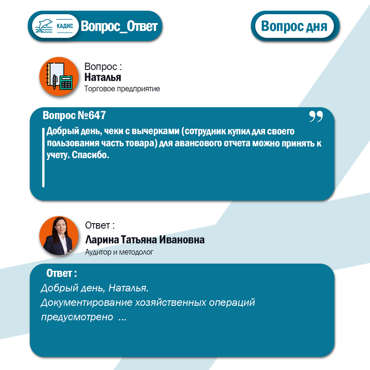 Добрый день, чеки с вычерками (сотрудник купил для своего пользования часть товара) для авансового отчета можно принять к учету. Спасибо. Ответ: Добрый день, Наталья. Документирование хозяйственных операций предусмотрено Положением по ведению бухгалтерского учета и бухгалтерской отчетности в Российской Федерации, утвержденным приказом Минфина России от 29.07.1998 № 34н. Согласно п. 16 вышеуказанного Положения внесение исправлений в кассовые и банковские документы не допускается. В остальные первичные учетные документы исправления могут вноситься лишь по согласованию с лицами, составившими и подписавшими эти документы, что должно быть подтверждено подписями тех же лиц, с указанием даты внесения исправлений. Поэтому, риски при принятии к учету такого документа есть. Дополнительно во избежание претензий со стороны ИФНС работнику необходимо приложить к авансовому отчету служебную записку с объяснением ситуации.