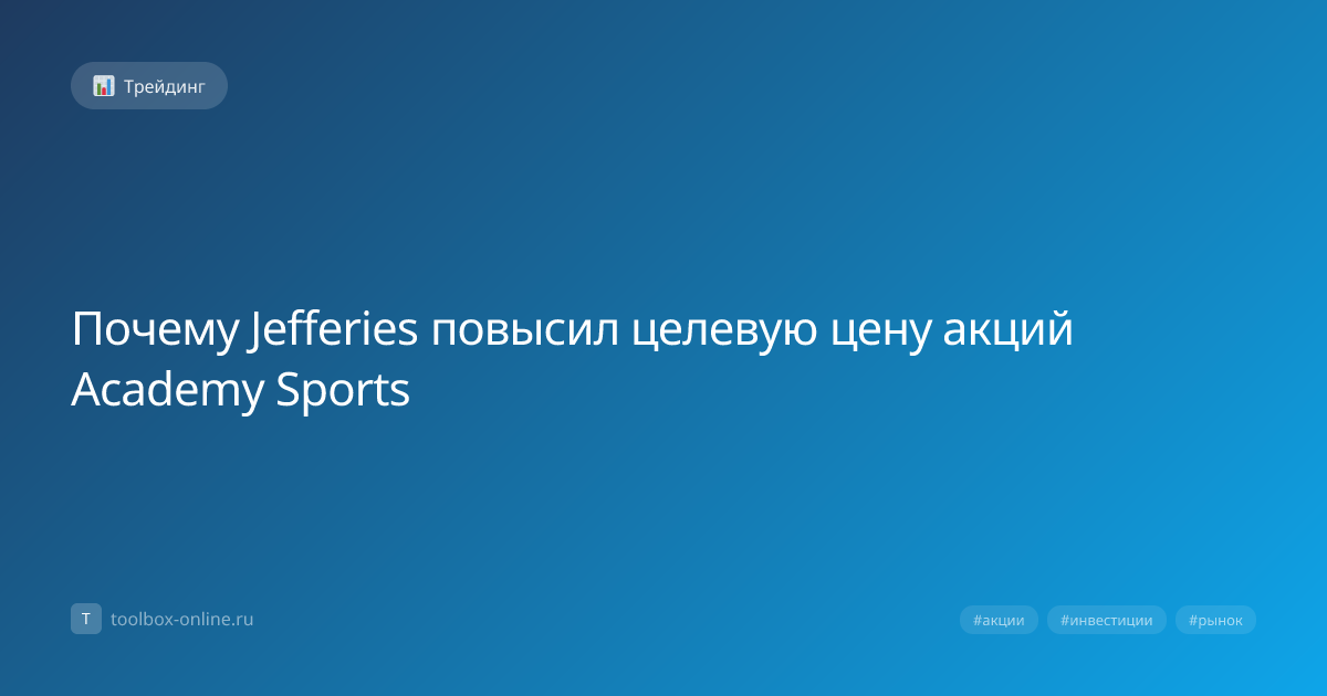 Jefferies повысил целевую цену акций Academy Sports до $45 (≈ 4 275 руб.) после публикации прогноза роста выручки на 12 % в 2026 году и ожидаемого улучшения EBITDA‑маржи до 15 %. Аналитики считают, что новые планы по расширению сети и цифровой трансформации укрепят позиции компании на рынке спортивных товаров. Jefferies прогнозирует рост выручки Academy Sports до $3,2 млрд в 2026 году, что на 12 % выше текущих показателей 2024 года. Прогноз основан на открытии 30 новых магазинов и увеличении онлайн‑продаж на 18 %. Рост считается устойчивым благодаря сильной позиции Academy Sports в сегменте «спортивный образ жизни», расширению ассортимента и повышенной эффективности цепочки поставок. Финансовая модель была пересмотрена с учётом более агрессивных темпов роста капитальных вложений и повышения операционной маржи. Основные риски включают замедление потребительского спроса, рост цен на сырьё и возможные задержки в строительстве новых торговых точек. Инвестору следует пересмотреть портфель,