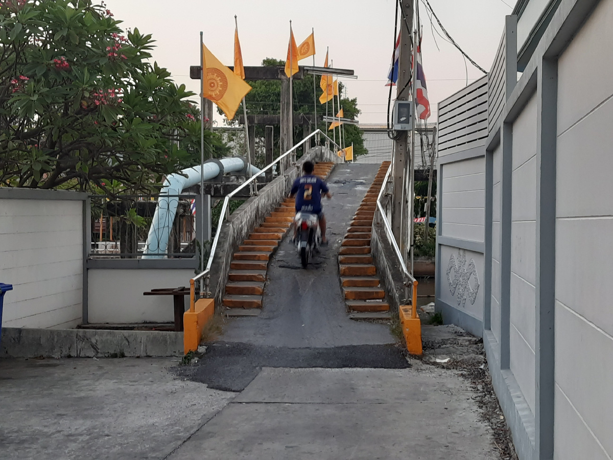 Увидели, что направо ведёт крутой подъём на мостик, по которому в горку взбираются байки.