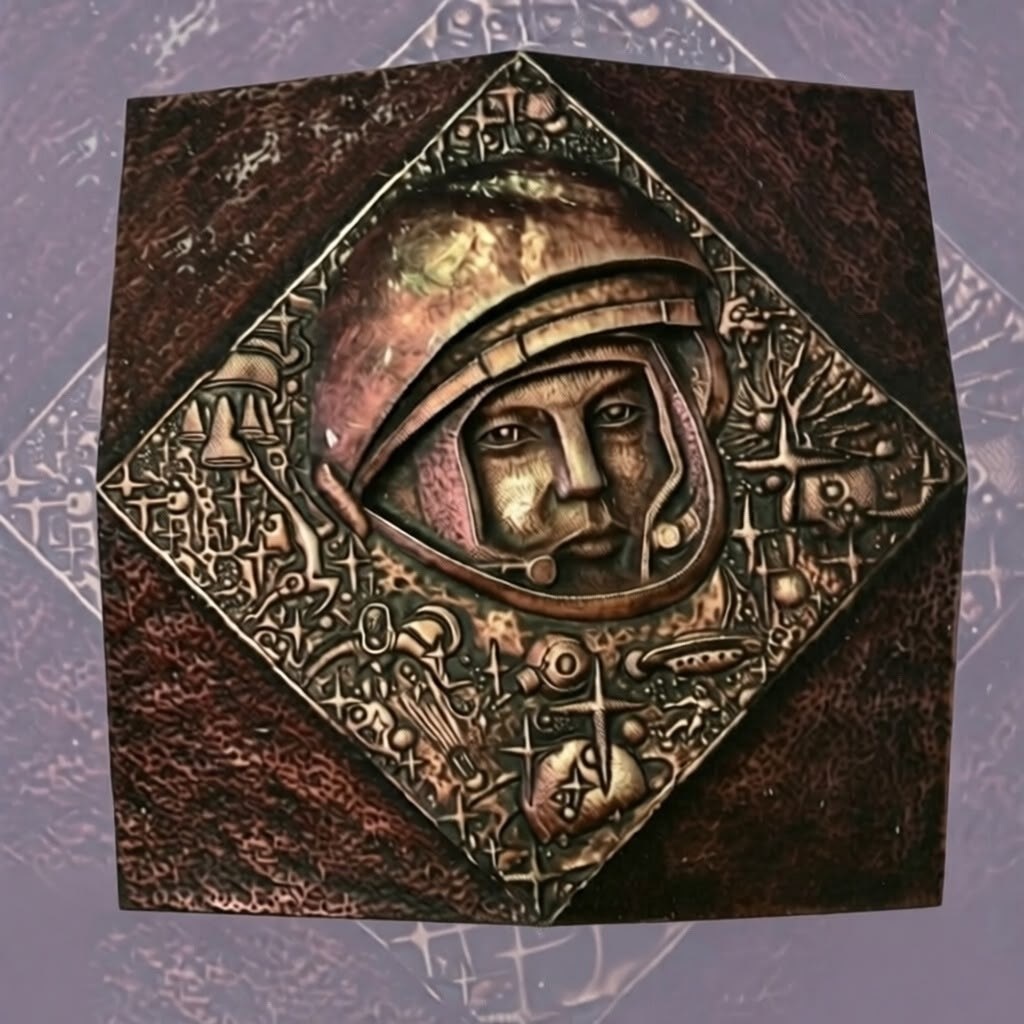 ✨ У этого экспоната удивительная судьба. Многие жители нашего района могут помнить этот портрет в шлеме, окруженный звездами и спутниками. Ведь когда-то эта чеканка украшала фасад здания Новосолянского Дома культуры. Она была свидетелем сотен праздников и встреч, провожала и встречала поколения сельчан. Благодаря неравнодушному человеку, краеведу из Новой Солянки Юрию Витальевичу Бабешко, эта важная частица нашей общей истории не затерялась во времени, а обрела новый дом в фондах музея истории Рыбинского округа. В 1960–70-е годы такие панно были лицом советского футуризма. Металл подчеркивал мощь достижений, а ручной труд мастеров делал каждый штрих — от улыбки Гагарина до траектории ракеты — живым и объемным. Теперь этот «космический страж» из Новой Солянки доступен каждому посетителю музея.