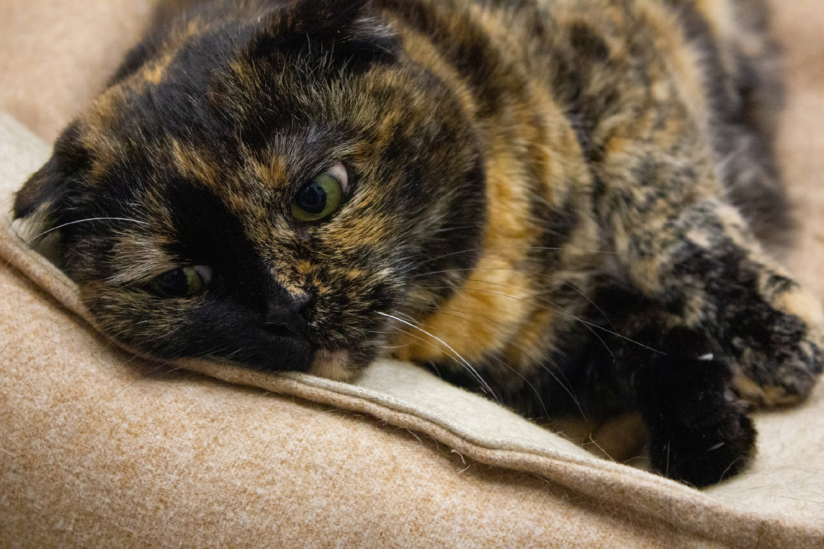 В нашем приюте живёт особенная девочка — Лилуша. Это не просто кошка, а настоящее сокровище с душой, сотканной из нежности и тепла. Её черепаховый окрас — словно звёздное небо, в котором каждая пятнышко рассказывает свою историю.