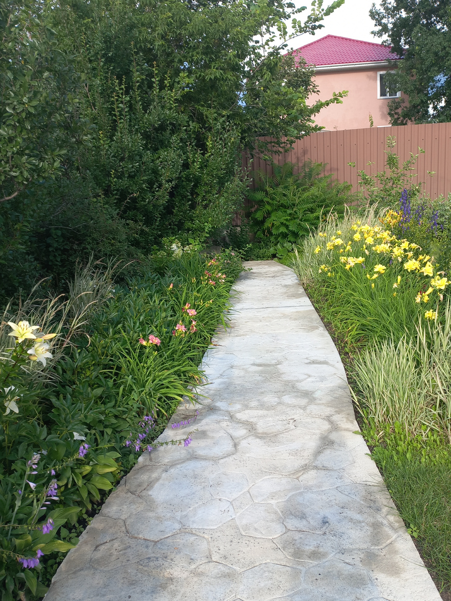 Главным радостным событием 2024 года стала дорожка. Очень долго я ее ждала. Отсутствие ее тормозило мои планы по высадке растений.