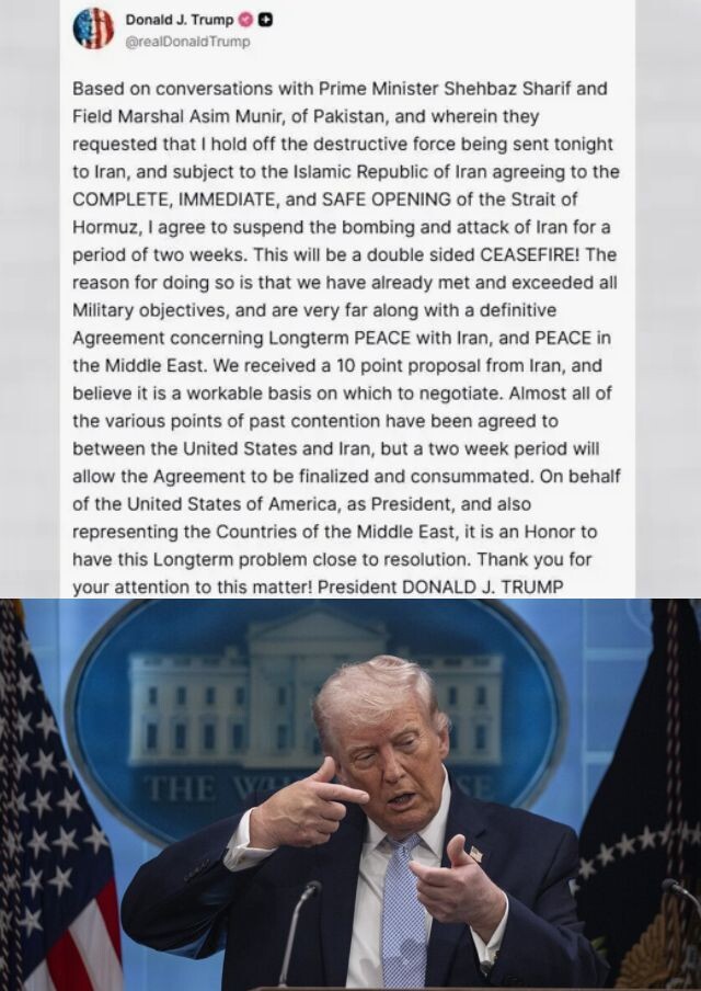 А потом случилось неожиданное. За два часа до истечения ультиматума Трамп, тот самый Трамп, который обещал стереть Иран с лица земли, написал в своей соцсети: «Я соглашаюсь приостановить бомбардировки и нападения на Иран на две недели». И понеслась.