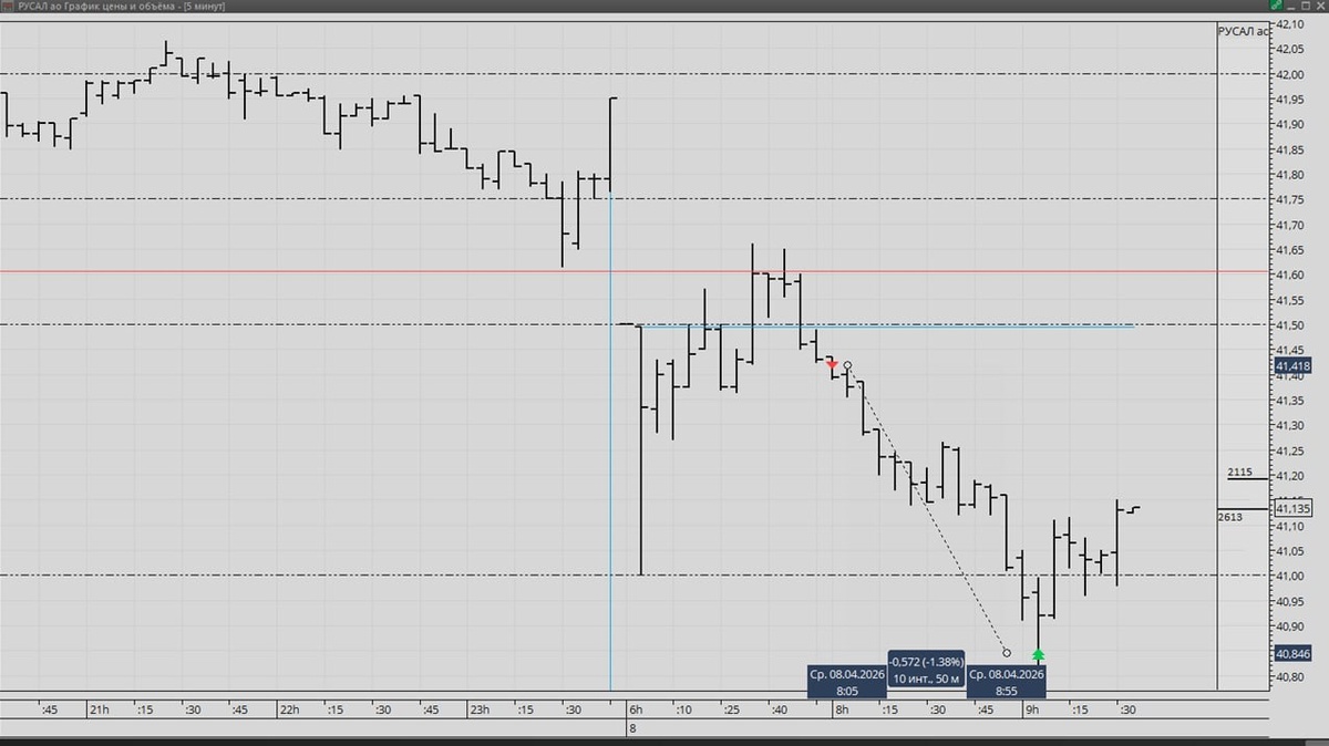 ▫️ Русал +1,3% 📈 Точка входа ( СЛП ) 💰 Риск | Прибыль ( 1к 3 ) Красная линия на графике показывает где поставил стоп ! 🥳 Поздравляю всех, кто заработал !!! 💬 Бесплатный | Чат - ПЕРЕЙТИ #сделки