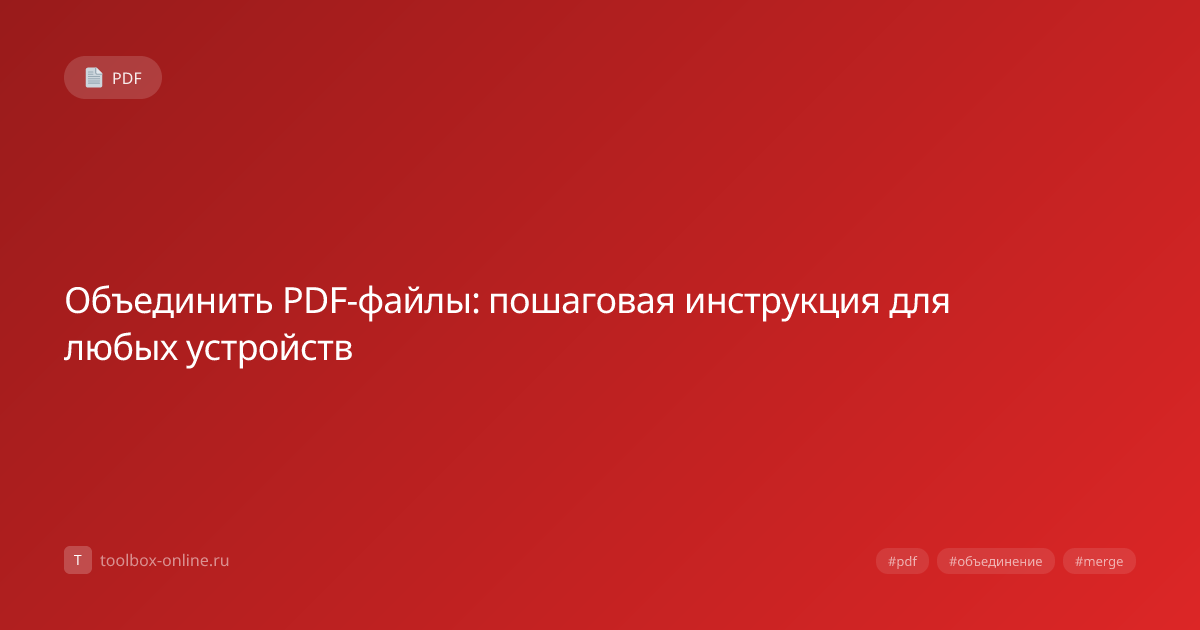 Объединение PDF необходимо при подготовке документов для подачи в госорганы, формировании отчётов из нескольких частей, создании портфолио или электронных книг. Вместо отправки 10 отдельных файлов — один структурированный документ, который удобнее читать и хранить. Помимо простого склеивания, продвинутые инструменты позволяют: добавлять оглавление, нумерацию страниц, закладки для навигации и водяные знаки. Для больших документов (50+ страниц) оглавление и закладки критически важны для удобства навигации. Совет: перед объединением проверьте ориентацию страниц в каждом файле. Смешение портретных и ландшафтных страниц без предупреждения — частая проблема. Также убедитесь, что ни один из файлов не защищён паролем — защищённые PDF нельзя объединить. Наш инструмент объединяет PDF-файлы локально в браузере — ваши документы не покидают ваш компьютер. Поддерживается объединение до 50 файлов за один раз.