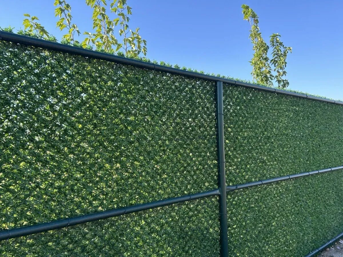 Для создания такого забора в землю вкапываются столбы, к которым привариваются поперечины из профильной трубы. На эту конструкцию крепится рулон оцинкованной проволоки, напоминающей рабицу, с вплетенной в нее искусственной травой или зеленью — это и есть сам «жидарский» забор.