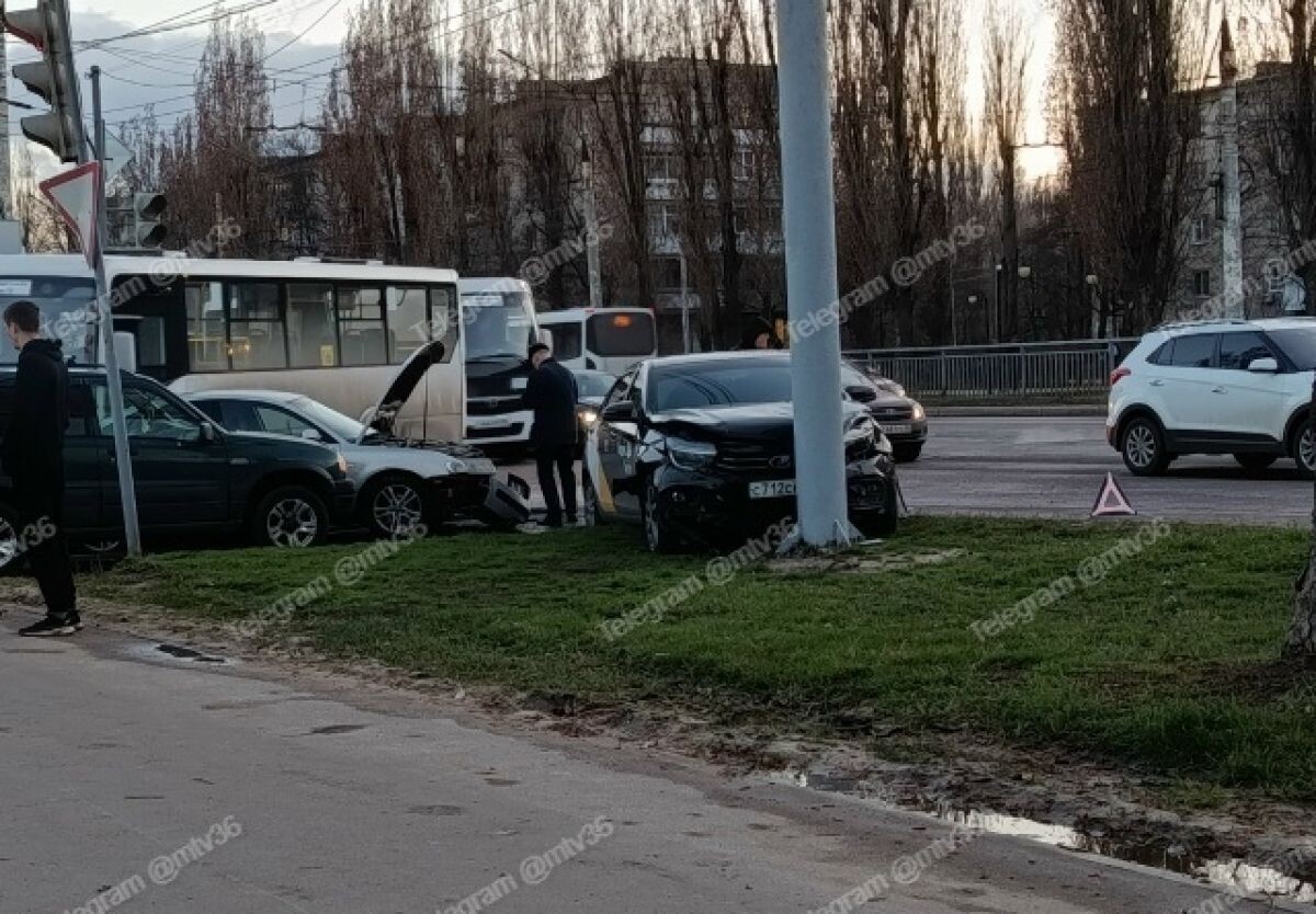 На Ленинском проспекте Воронежа столкнулись четыре автомобиля и столб