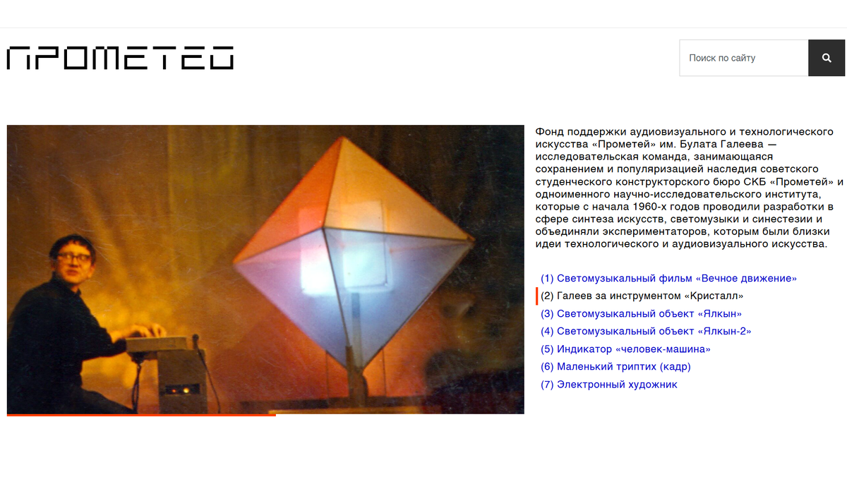 Фонд поддержки аудиовизуального и технологического искусства «Прометей» имени Булата Галеева запустил онлайн-архив российского медиаискусства ХХ века. Сайт объединяет материалы фонда «Галеев-Прометей» и партнерских институций и становится комплексной платформой для изучения, сохранения и популяризации истории технологического и аудиовизуального искусства в России. Фото: Скриншот В архиве собраны документы, отражающие развитие экспериментальных художественных практик, связанных с синтезом искусств, светомузыкой, синестезией и ранними формами медиаискусства. Основу составляют цифровые копии материалов из коллекции фонда, охватывающие практически весь ХХ век. В архиве представлены фотографии, чертежи, патенты, афиши, партитуры, научные публикации и другие источники. Проект продолжает исследовательскую линию СКБ «Прометей» — студенческого конструкторского бюро, созданного в Казани в начале 1960-х годов под руководством Булата Галеева. В нем работали инженеры, художники и исследователи, зан