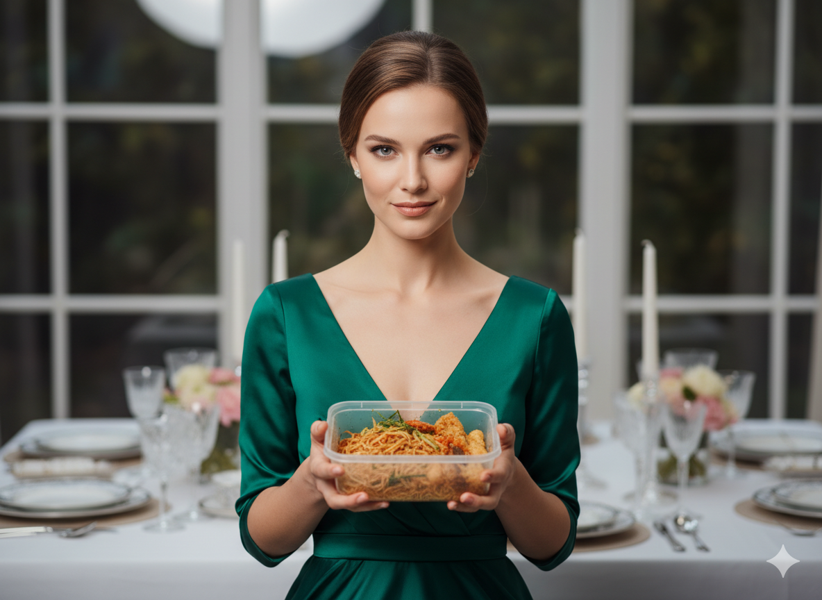 Изысканный аромат розмарина и апельсинов мгновенно капитулировал. По гостиной пополз тяжёлый, удушливый запах пережаренного масла, лука и чеснока. В прозрачном пластике сиротливо плавали в застывшем, белесом жиру огромные, кривые котлеты. А в майонезном ведёрке покоился крупно нарубленный, щедро залитый майонезом оливье, где куски колбасы размером с добрый ластик соседствовали с такими же глыбами картошки.
