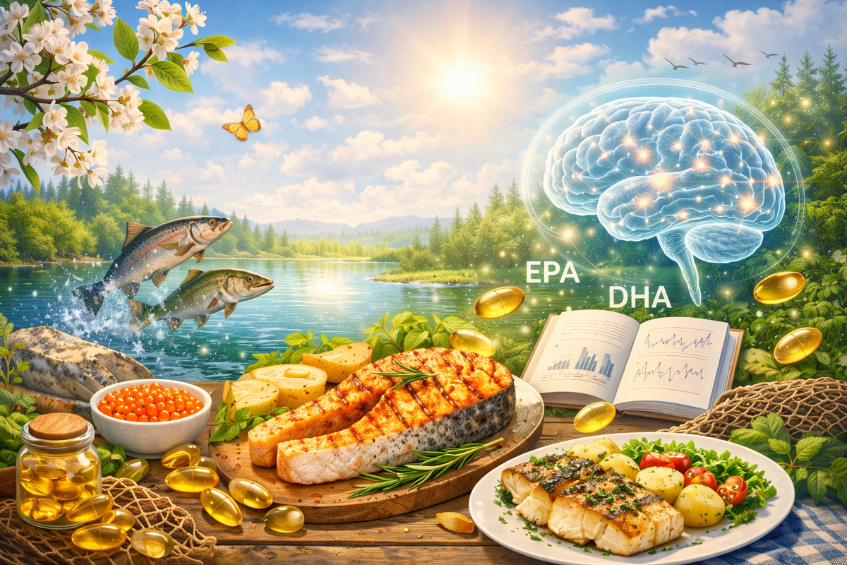 вроде стало больше солнца, а энергии всё равно не хватает. Появляются: 👉 Это не «ленивое настроение», а вполне объяснимые процессы в организме. И здесь неожиданно важную роль играет… рыба. После зимы организм сталкивается с несколькими проблемами: 👉 В результате снижается уровень серотонина — гормона хорошего настроения. Именно поэтому весной мы чаще чувствуем: Рыба — один из ключевых продуктов, который напрямую влияет на работу мозга. Главная причина — омега-3 жирные кислоты. Научные исследования показывают: 👉 омега-3: Например, в исследованиях в области нейропсихиатрии отмечается, что регулярное употребление рыбы связано с более стабильным эмоциональным состоянием. Если упростить: 🧠 омега-3 участвуют в работе нейронов